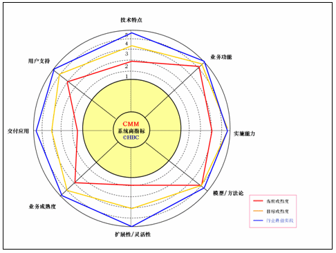 根據(jù)評估分?jǐn)?shù)值形成CMM評估表,為電子表格形式,帶有指標(biāo)編號和權(quán)重、分值,后面為實(shí)際評測分?jǐn)?shù)和備注,可以作為單獨(dú)的廠商系統(tǒng)評測,也可以作為橫向的多家廠商系統(tǒng)的水平評測。當(dāng)橫向的多家系統(tǒng)商評測時(shí)實(shí)際評測分?jǐn)?shù)欄為多家系統(tǒng)商評測分?jǐn)?shù)。