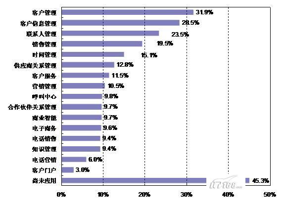 與2006年相比CRM市場前景依然廣闊,企業(yè)應用依然集中在客戶管理,客戶信息管理,聯(lián)系人管理等主要的應用領域,品牌認知度上,與2006年的數(shù)據(jù)沒有太大的變動。