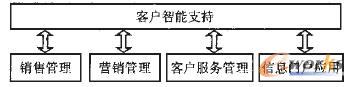 。5)客戶智能支持。客戶智能支持處于系統(tǒng)功能平臺(tái)的核心地位,若把圖2中的5個(gè)模塊比作是人體的不同功能器官,客戶智能支持就相當(dāng)于人的“大腦”。雖然CRM應(yīng)用系統(tǒng)中其他模塊也具各一定的數(shù)據(jù)統(tǒng)計(jì)分析能力,但它們的主要功能定位在業(yè)務(wù)操作和客戶協(xié)作層面,客戶智能支持模塊則是完整的、以輔助決策為設(shè)計(jì)目標(biāo)的分析型應(yīng)用,其基礎(chǔ)數(shù)據(jù)來自于各CRM業(yè)務(wù)流程運(yùn)行產(chǎn)生的大量數(shù)據(jù)及企業(yè)其他應(yīng)用系統(tǒng)數(shù)據(jù)。