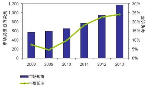 中國CRM解決方案市場規(guī)模(2008-2013年)