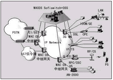 WACOS可實(shí)現(xiàn)的業(yè)務(wù)有:POTS接入業(yè)務(wù)、GSM/GPRS、PHS、W-CDMA接入業(yè)務(wù)、ISDN接入業(yè)務(wù)、VoIP/FoIP業(yè)務(wù)、Internet接入業(yè)務(wù)、DSLAM接入業(yè)務(wù)、虛擬撥號(hào)專(zhuān)網(wǎng)VPDN業(yè)務(wù)和Ethernet接入業(yè)務(wù)。