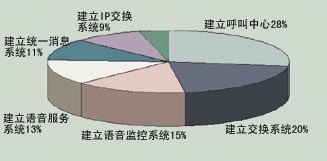 目前,語音卡已經(jīng)廣泛應用于各行各業(yè),應用尤其以呼叫中心應用最為典型。 呼叫中心普遍應用于各種行業(yè)部門中,例如:電信、金融、政府機關(guān)、醫(yī)療、保險部門、電力等及其他一些應用,像121天氣預報等。對用戶的抽樣調(diào)查中,已經(jīng)使用語音卡的用戶占58%,計劃使用的占26%,而語音卡的應用以前臺、客戶服務部和售后服務部應用居多,可見語音卡的應用市場潛力非常巨大。語音卡的應用中主要以建立呼叫中心和交換系統(tǒng)為主,常用于查詢、咨詢和電話委托交易等。