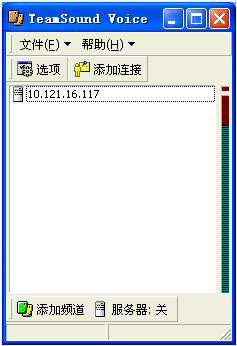 2.基本操作。開服務(wù)器,只需點(diǎn)擊一下“服務(wù)器:開”這個(gè)按鈕,你的機(jī)器就變成服務(wù)器了,很方便(注意要先設(shè)定默認(rèn)頻道)。加入你的戰(zhàn)友開了服務(wù),你要加入先點(diǎn)擊“添加連接”,在對話框中要輸入對方的IP和密碼,然后再“添加頻道,在局域網(wǎng)中,則直接“添加頻道”就ok了。