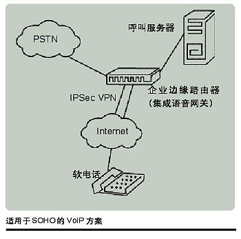 。。對于小型分支而言,是否采用VoIP方案需要考慮其向大型站點或總部呼叫的流量來進(jìn)行成本分析。對于只有幾個用戶和少量通話量的分支而言,采用VoIP
