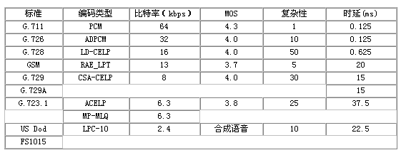 標(biāo)準(zhǔn) 編碼類型 比特率 MOS 復(fù)雜性 時延 (kbps) (ms) G.711 PCM 64 4.3 1 0.125 G.726 ADPCM
