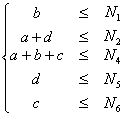 1, 2, …, 6) 表示第i個(gè)網(wǎng)關(guān)可以支持的最大呼叫數(shù)量,記通過(guò)鏈路A-C的最大呼叫數(shù)量為m, 則a, b, c, d和m滿(mǎn)足以下關(guān)系: