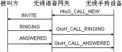 當(dāng)用戶通過無線手持設(shè)備撥打一個號碼時,無線手持設(shè)備將發(fā)送一個HtoG_CALL_ NEW的內(nèi)部會話信令連同呼叫的號碼給無線語音網(wǎng)關(guān),無線語音網(wǎng)關(guān)收到該信令后,將根據(jù)該信令構(gòu)造相應(yīng)的SIP消息并發(fā)送到外部網(wǎng)絡(luò)。當(dāng)無線語音網(wǎng)關(guān)收到來自被叫方表示振鈴信息的暫時應(yīng)答RINGING時,將發(fā)送一個GtoH_CALL_RINGING的內(nèi)部會話信令給手持設(shè)備。當(dāng)無線語音網(wǎng)關(guān)收到來自被叫方表示應(yīng)答的信息ANSWERED時,語音網(wǎng)關(guān)將啟動RTP線程并發(fā)送一個GtoH_CALL_ANSWERED的內(nèi)部會話信令給手持設(shè)備以通知被叫方已應(yīng)答。此時手持設(shè)備開啟語音進(jìn)程,與被叫方實(shí)現(xiàn)通話。