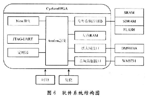 SOPC系統(tǒng)的平臺(tái)包括:Altera的Nios處理器、Aval—on總線,片內(nèi)外存儲(chǔ)器以及外設(shè)模塊等。利用SOPCBuilder,用戶可以很方便地將處理器、存儲(chǔ)器和其他外設(shè)模塊連接起來,形成一個(gè)完整的系統(tǒng)。其中,SOPC