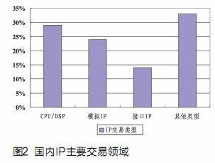 Express等);三是模擬IP(如PLL,ADC等)。這三類IP需求占到總需求的一半多。而其他的交易類型如標(biāo)準(zhǔn)的內(nèi)存模塊,以及一些面向特殊應(yīng)用的IP,則占據(jù)國(guó)內(nèi)需求的三分之一(見(jiàn)圖2)。