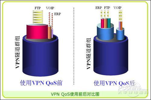 對(duì)于一般網(wǎng)絡(luò)線路中的BT、迅雷等P2P大帶寬應(yīng)用,具備普通的帶寬管理或者智能化帶寬管理的軟件、網(wǎng)關(guān)設(shè)備等就能應(yīng)付,但對(duì)于VPN通道中的特定應(yīng)用帶寬則無法控制,一旦某項(xiàng)特別的應(yīng)用(例如:遠(yuǎn)程FTP下載)占用了大部分的整體VPN帶寬,VPN線路中的其他應(yīng)用幾乎就無法進(jìn)行。那么,針對(duì)這個(gè)問題VPN QoS又是如何解決呢?