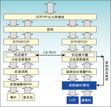 盡管同步并不是一個很大的運算負擔,但同步算法和實現(xiàn),包括抖動緩沖管理,都需要特別小心方可達到預期的結果。有效的方法是,將該處理與總的系統(tǒng)控制和編解碼處理管理緊密地協(xié)調(diào)。一種最好的方案是將同步處理放在實現(xiàn)更高級功能的系統(tǒng)通用主CPU上來實現(xiàn)。