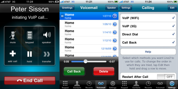 一家來自舊金山的VoIP廠商公布了一款iPhone上運(yùn)行的VoIP應(yīng)用,Line2.這款僅售99美分的程序可以讓你在Wi-Fi與3G網(wǎng)絡(luò)上撥打VoIP電話,只要每月14.95美元,您就可以隨意通過這款網(wǎng)絡(luò)電話撥打美國和加拿大,這一切只需要您有3G或者Wi-Fi信號即可。