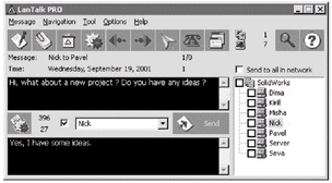 像ICQ、OICQ、MSN Messenger等即時(shí)通訊軟件必須登錄Internet后才能使用,并不支持局域網(wǎng),而LanTalk Pro是一款局域網(wǎng)即時(shí)通訊的專(zhuān)用軟件,通過(guò)它你可以快速、方便地與同一局域網(wǎng)中的任何人進(jìn)行實(shí)時(shí)交流。