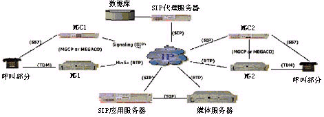 3. MGC1將撥出的數(shù)字號碼轉(zhuǎn)換為一個(gè)SIP地址(目的地址),并且送到一個(gè)請求的SIP代理服務(wù)器。