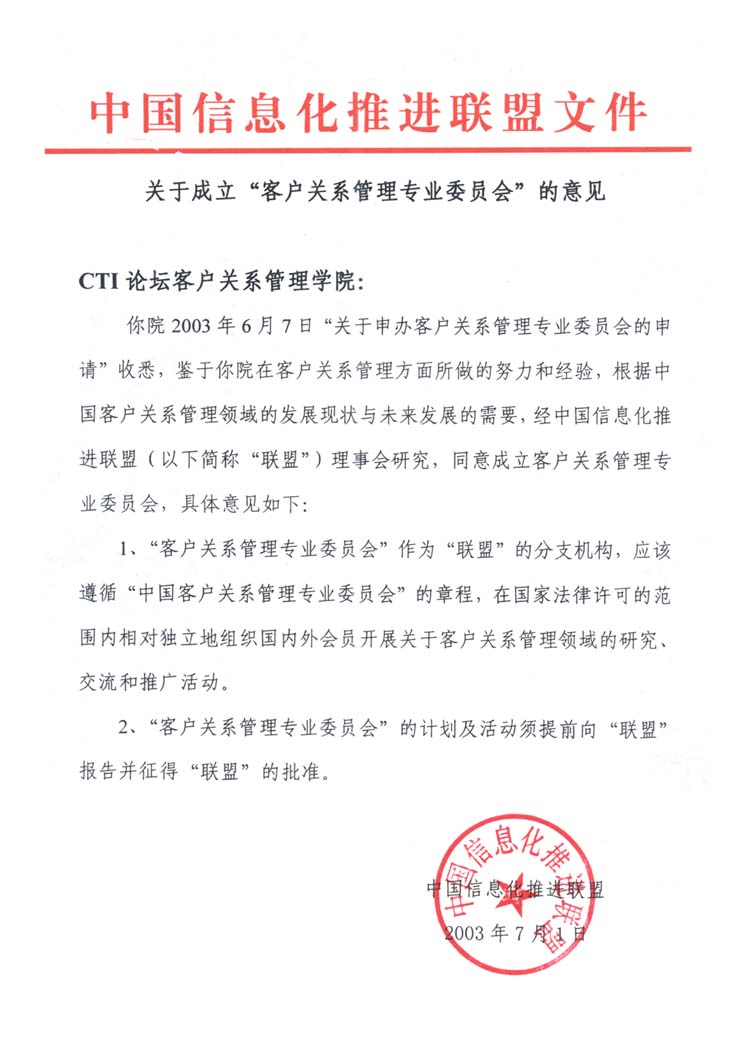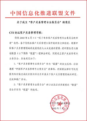 近日,由中國移動、中國網通、中國聯(lián)通、海爾集團、聯(lián)想集團、摩托羅拉、微軟、CTI論壇等20多家單位發(fā)起籌備的"中國客戶關系管理專業(yè)委員會"(以下簡稱專委會),經信息產業(yè)部中國信息化推進聯(lián)盟的批準,正式在京成立。