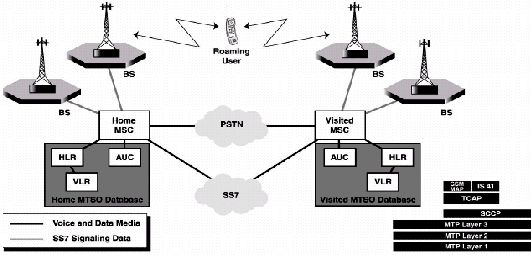 除了空中接口,在無(wú)線系統(tǒng)的設(shè)計(jì)中支持無(wú)線用戶的移動(dòng)性是主要的挑戰(zhàn)。無(wú)線系統(tǒng)對(duì)信令的要求明顯要比實(shí)現(xiàn)類似功能的地上有線系統(tǒng)要苛刻得多。結(jié)果使得無(wú)線網(wǎng)絡(luò)必須組合更先進(jìn)更全面的信令控制系統(tǒng)。即使移動(dòng)單元在它的歸屬網(wǎng)絡(luò)中,系統(tǒng)也要隨時(shí)跟蹤它的位置,因?yàn)楹羧、認(rèn)證和傳遞功能需要知道它當(dāng)前所處的位置。系統(tǒng)運(yùn)營(yíng)商提供給用戶的移動(dòng)等級(jí)有越來越復(fù)雜的趨勢(shì),這就要求在系統(tǒng)間必須應(yīng)用復(fù)雜的信令才足以支持漫游、登記和路由尋找等功能。這就是無(wú)線系統(tǒng)普遍選擇SS7作為信令協(xié)議的原因。