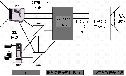 如圖14所示,SS7/MF網(wǎng)關(guān)可以實(shí)現(xiàn)SS7信令到MF(多頻)信令的轉(zhuǎn)換,使現(xiàn)有MF信令交換機(jī)無(wú)須升級(jí)就能擁有SS7信令能力;旌狭薙S7和基于音頻信令的呼叫建立環(huán)境能為各種運(yùn)營(yíng)商經(jīng)濟(jì)實(shí)用的SS7網(wǎng)絡(luò)接入方案,采用這一方案的有蜂窩電話運(yùn)營(yíng)商、本地電話運(yùn)營(yíng)商、長(zhǎng)途電話運(yùn)營(yíng)商和其它一些仍使用舊式交換機(jī)的電話運(yùn)營(yíng)商。