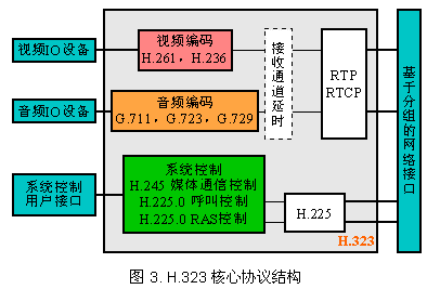 H.323是最早被采納的VoIP標(biāo)準(zhǔn)。H.323協(xié)議體系規(guī)定了基于分組網(wǎng)進(jìn)行兩點/多點實時媒體通信的系統(tǒng)邏輯組件、消息定義和通信過程。