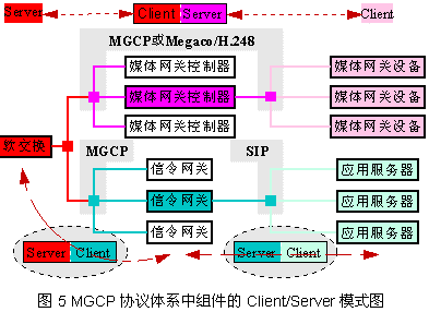Gateway Controller)通過MGCP或Megaco/H.248構(gòu)成服務(wù)器/客戶端關(guān)系,而媒體網(wǎng)關(guān)控制器有作為服務(wù)器同樣通過MGCP等協(xié)議控制媒體網(wǎng)關(guān)設(shè)備(Media