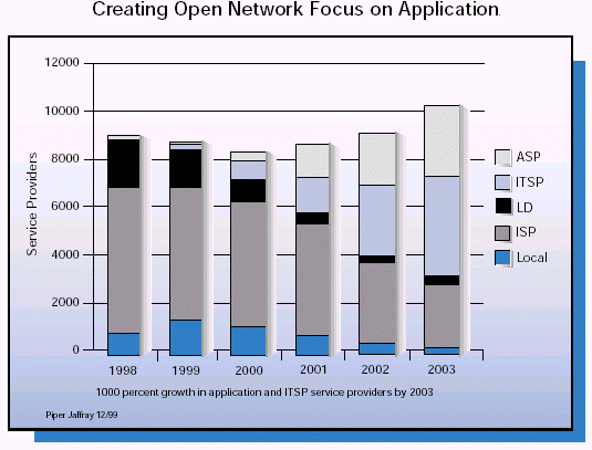 關(guān)于新的業(yè)務(wù)提供商的前景,ASP是最為熱門的,由于整個(gè)行業(yè)的外購(gòu)趨勢(shì),使得它吸引了數(shù)目巨大的風(fēng)險(xiǎn)債券和投資。但是如果說他們只是關(guān)注外購(gòu)那就太籠統(tǒng)了。事實(shí)上一些公司是以托管為中心的,一些是以連通性為中心的,還有一些是以應(yīng)用為中心的。