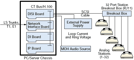 DISI16R2, DISI24R2, 和 DISI32R2 可以通過CTbus與其他集成的網(wǎng)絡接口和資源板卡連接構成可擴展的中繼和座席交換的配置.