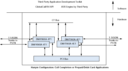 通過訪問計算機(jī)電話(CT)工業(yè)標(biāo)準(zhǔn)的ECTF H.100/H.110 CT Bus,利用DM/V-A多功能資源系列板卡,應(yīng)用程序可以具備交換能力以及擴(kuò)展到其他技術(shù)的能力,諸如網(wǎng)絡(luò)接口(DM/T或者DM/N系列),ATM連接,SS7,以及IP電話。