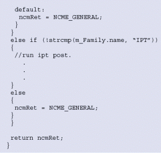 。。當(dāng)系統(tǒng)檢測到一個(gè)外圍設(shè)備板卡時(shí),建議您在該設(shè)備上執(zhí)行POST以保證硬件功能良好。系統(tǒng)版提供了POST工具,可以基于硬件類型和它屬于的產(chǎn)品系列被單獨(dú)執(zhí)行。圖6例證了這個(gè)功能是如何完成的。代碼snippet是系統(tǒng)版應(yīng)用實(shí)例pfmanager的一部分。
