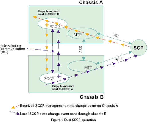 SCCP通過(guò)支持可尋址的子系統(tǒng)概念提高了消息傳遞部分(MTP)的路由能力。所有已知的本地和遠(yuǎn)端子系統(tǒng)的路由可用性(允許狀態(tài)或禁止?fàn)顟B(tài))在SCCP層中進(jìn)行管理。在一個(gè)由N個(gè)SCCP層(或多個(gè)SCCP的實(shí)例)組成作為同一節(jié)點(diǎn)編碼的系統(tǒng)中,用戶(hù)應(yīng)用程序和遠(yuǎn)端節(jié)點(diǎn)需要能夠通過(guò)任何SCCP實(shí)例交換SCCP數(shù)據(jù)消息,并且希望每個(gè)SCCP中的路由表都是相同的。為了達(dá)到這個(gè)目的,需要使用廣播機(jī)制增強(qiáng)SCCP層,這種機(jī)制將本地或遠(yuǎn)端的路由狀態(tài)的任何改變發(fā)送到廣播任務(wù)。廣播任務(wù)負(fù)責(zé)將路由變化傳送到N-1(其他)SCCP實(shí)例。在雙系統(tǒng)中,廣播任務(wù)只是另一個(gè)SCCP層,這兩層使用基于消息的API進(jìn)行通信。在一個(gè)雙機(jī)箱/子機(jī)架環(huán)境中,這些消息可以由RSI和TCP/IP組合來(lái)傳遞。
