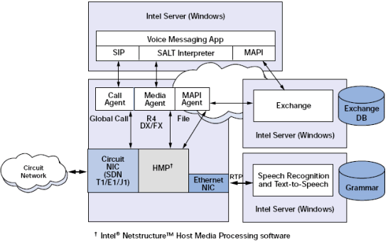Exchange, 和語音識(shí)別是使用第三方技術(shù)連接到微軟平臺(tái)上通過微軟語音編程接口(SAPI)或者直接連接到SALT解釋器.